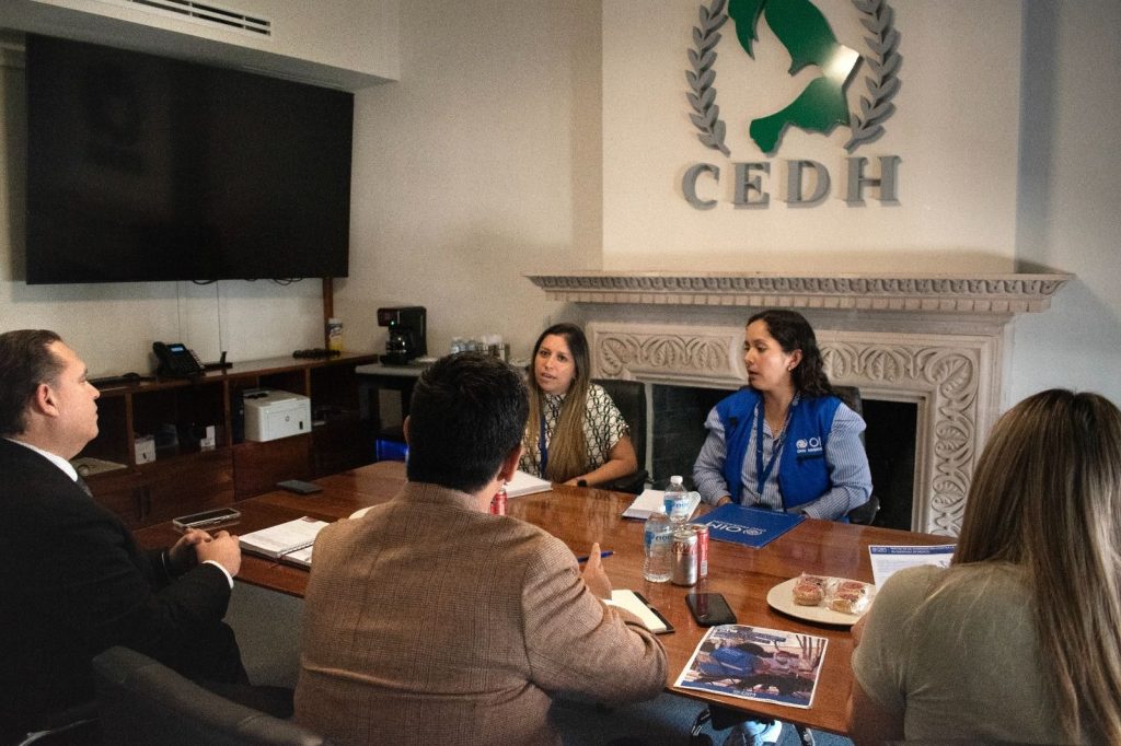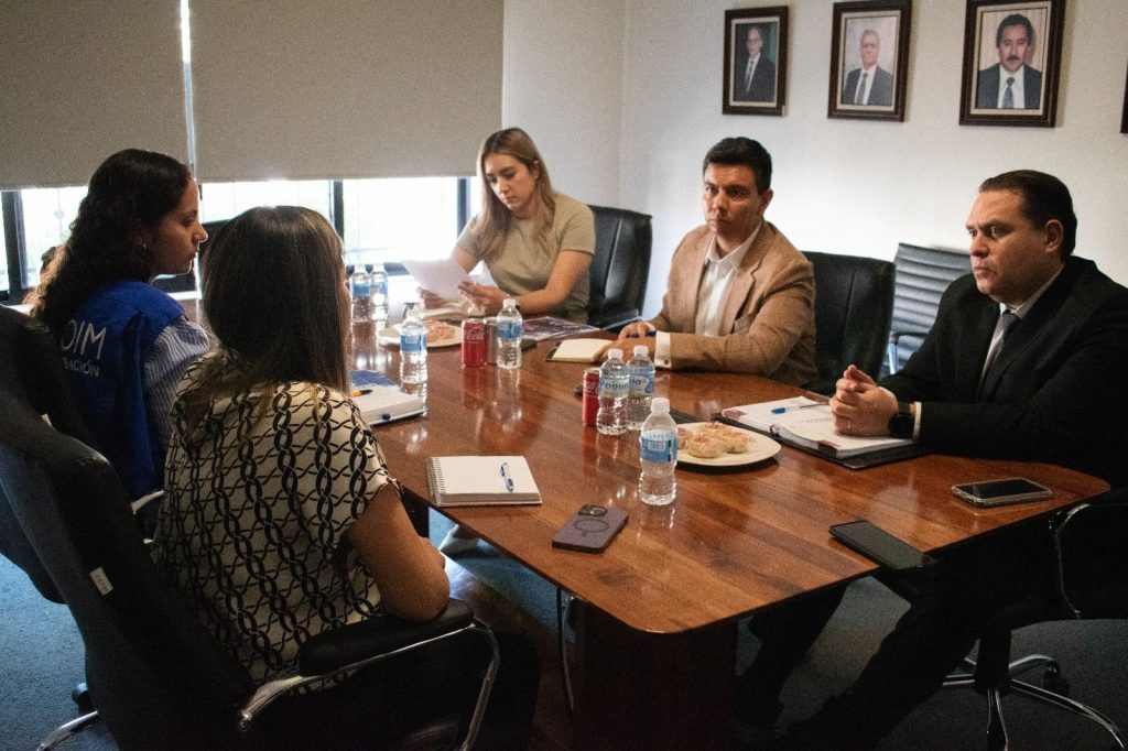 En la reunión estuvieron Vanessa Foronda, coordinadora de la Unidad contra la Trata de Personas y el Tráfico Ilícito de Migrantes y Anaiza Sánchez Hernández, asociada de Proyecto contra la Trata de Personas de la OIM, quienes fueron recibidas en representación del presidente de CEDH, Javier Gónzalez Mocken, por el secretario técnico, Gildardo Iván Félix Durán; el director jurídico, Sergio Ruiz Dávila y la titular de relaciones públicas, Ingrid Ramírez Baquera.