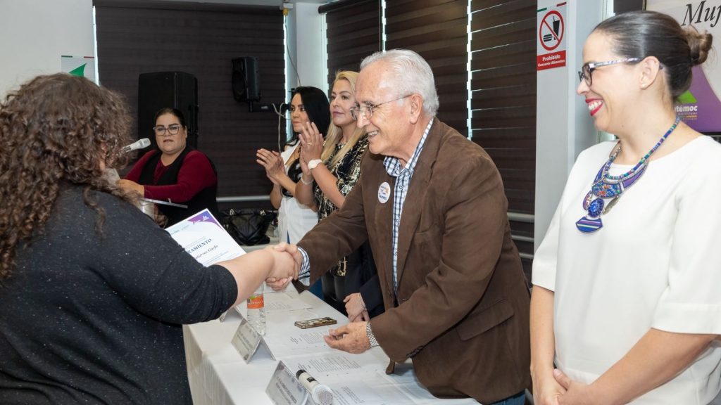 En el presídium estuvieron presentes Ana Isabel Franco, regidora presidenta de la Comisión de Familia, Mujer y Equidad de Género; y Tarcy Guerra García, coordinadora del Proyecto Mucpaz, en el Instituto Municipal de las Mujeres.