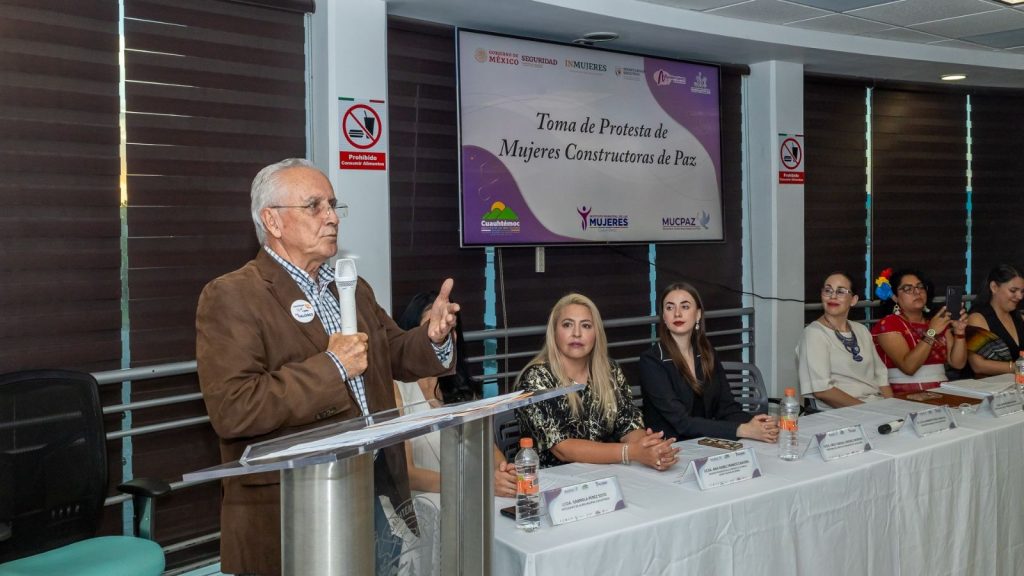 El presidente municipal Beto Pérez tomó protesta a 27 Mujeres Constructoras de Paz, un proyecto que promueve la cultura de la paz y la prevención de la violencia, y da como resultado espacios más seguros para las mujeres en sus comunidades.