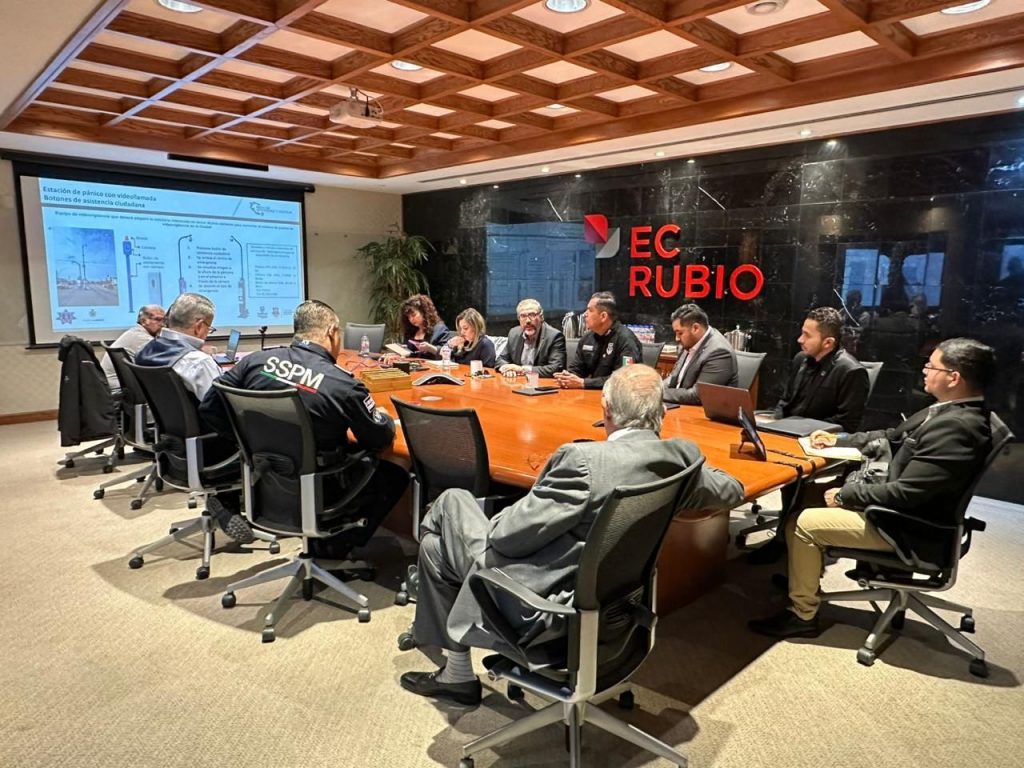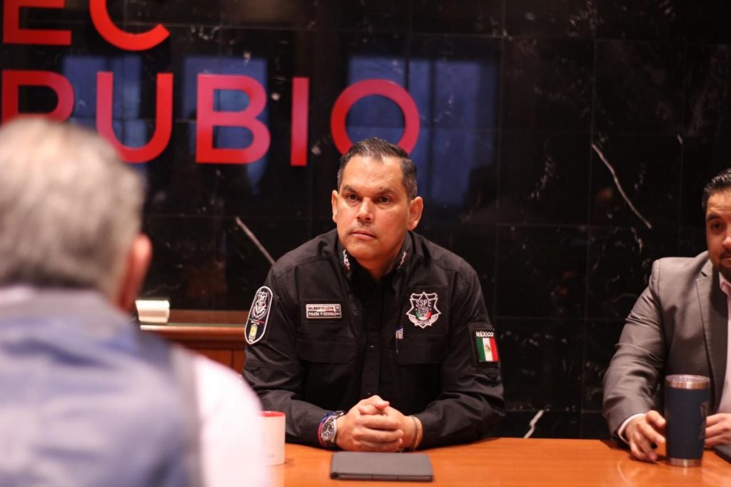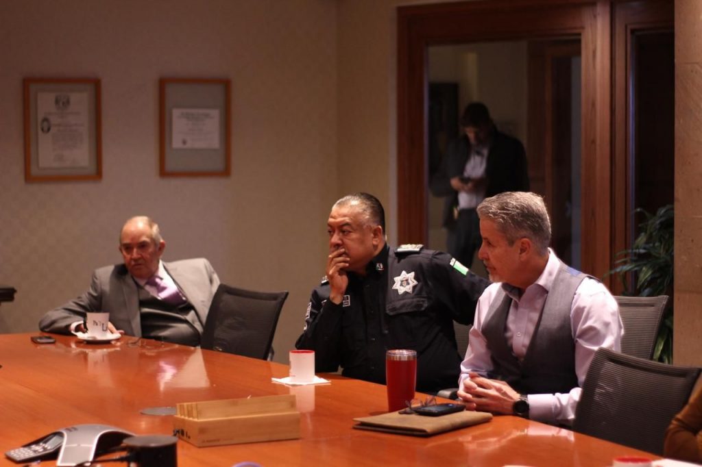 La reunión se llevó a cabo en la Sala Fundadores de EC Rubio Servicios Legales y contó con la participación César Omar Muñoz, secretario de Seguridad Pública Municipal; Adrián Eduardo Lui Chavira, subsecretario de la Plataforma Centinela; Ángela Sánchez Miramontes, secretaria técnica de la Mesa de Seguridad; Iván Márquez, director de Infraestructura de la Secretaría de Seguridad Pública Estatal.