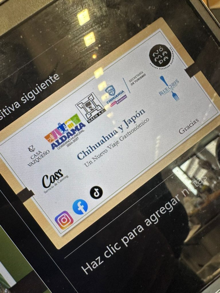 Durante la clase magistral en las aulas niponas estuvieron presentes productos de Chihuahua como «El Nómada», «Casa Vasqueño», ,el Municipio de Aldama, Blue Chefs.