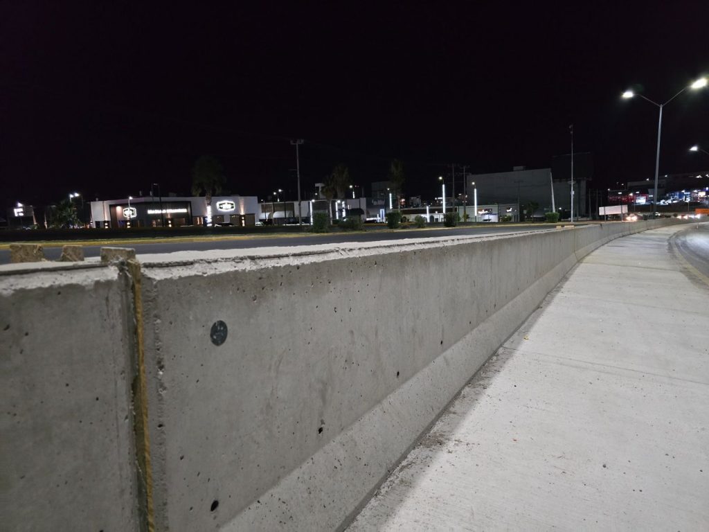 Hasta la fecha la barrera presenta un 80 por ciento de avance, donde se trabaja en los últimos tramos con demoliciones, cimbrado y colocación de acero en zapata para colado y dar unión con la barrera existente a la altura de la avenida Mirador, también se labora en la colocación de registros para alumbrado, postes y luminarias, gracias a la inversión de 9 millones de pesos.